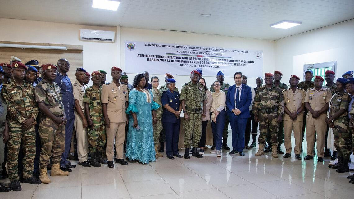 Une série d’ateliers de sensibilisation des chefs de corps, officiers, sous-officiers et militaires de rang des Forces armées centrafricaines (FACA) à la prévention et à la gestion du harcèlement et des violences basées sur le genre en milieu militaire a été organisée les 22, 23 et 24 octobre 2024 à Bangui. Il s’agit d’une initiative du Ministère de la défense nationale qui a reçu le soutien de la MINUSCA.