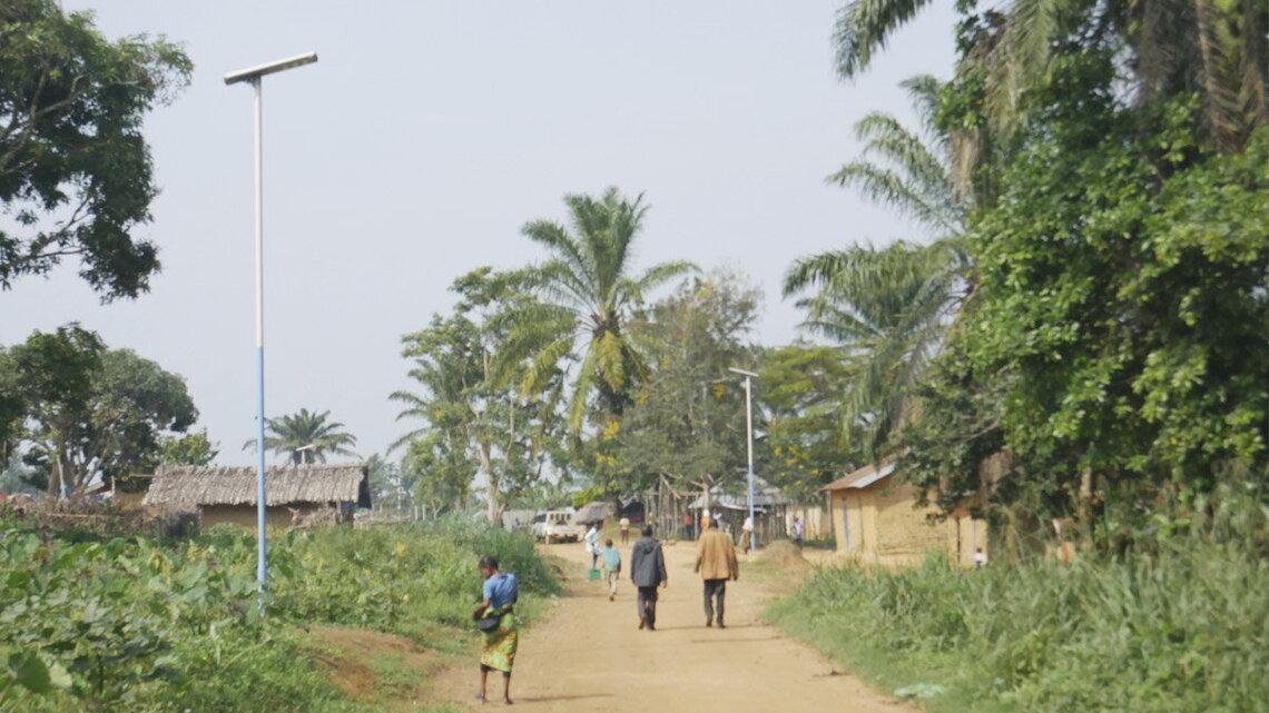 Le projet d'éclairage public, financé par la MONUSCO, permet aux habitants de la localité de circuler désormais en soirée sans appréhension. / Photos Joël Bofengo