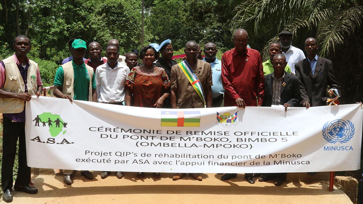 Dans le cadre des Projets à Impact Rapide (QIPs), la section des Affaires civiles de la MINUSCA, en partenariat avec la mairie de Bimbo 5 et l’ONG Afrique Secours et Assurance (ASA), a procédé, ce vendredi 6 avril 2018 à l’inauguration du pont réfectionné de Mboko, situé au niveau de la sortie Est de Bangui.