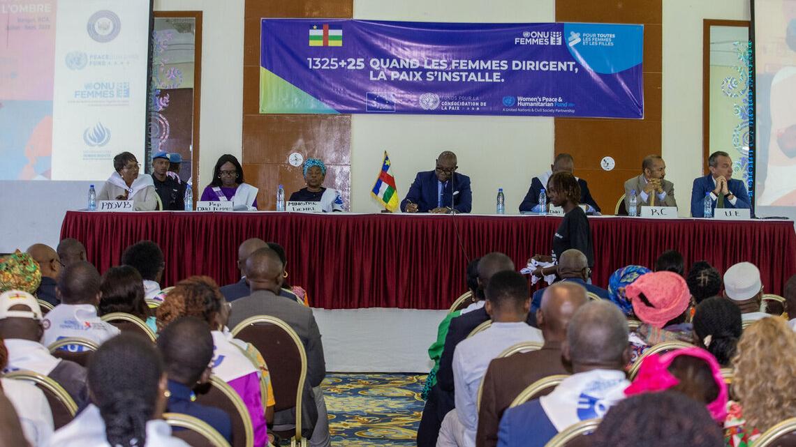 À l’occasion du 25ᵉ anniversaire de la Résolution 1325 du Conseil de sécurité des Nations Unies, un symposium consacré à l’égalité de genre, à la paix et à la résilience s’est tenu le 11 novembre 2025 à Bangui. Une exposition photo mettant en lumière la contribution essentielle des femmes centrafricaines à la promotion de la paix, à la médiation et à la reconstruction nationale a été présentée en marge de cet événement organisé par le Ministère de la promotion du genre, de la protection de la femme, de la famille et de l’enfant, en partenariat avec ONU Femmes et plusieurs autres partenaires.
