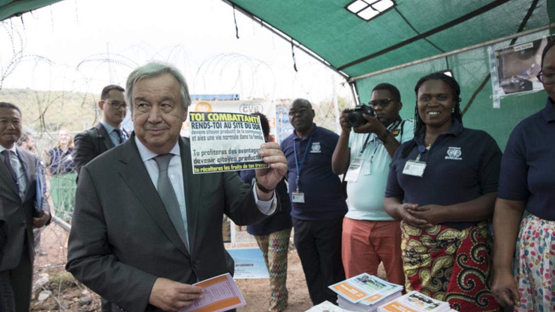 António Guterres visite le centre de transit et la Base militaire de la MONUSCO à Munigi
