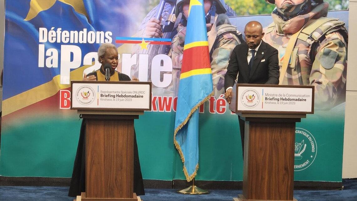 Transcription du Briefing conjoint de la Représentante spéciale du Secrétaire général des Nations Unies en RDC, et Cheffe de la MONUSCO, Bintou Keita et du ministre de la Communication et des Médias, Patrick Muyaya 19 juin2023 à Kinshasa