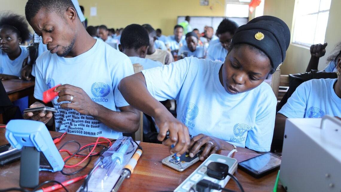 Nord-Kivu : la MONUSCO soutient la réinsertion socio-économique avec une formation en réparation de téléphones