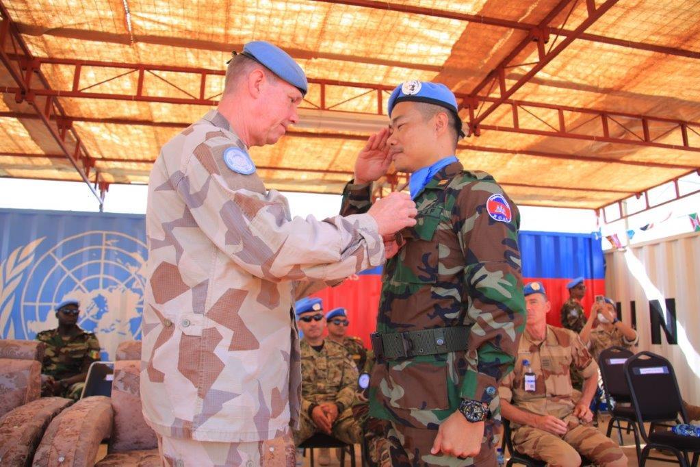 14 septembre 2022MINUSMA140 Casques bleus du 8ème détachement du contingent cambodgien de déminage reçoivent la médaille des Nations unies