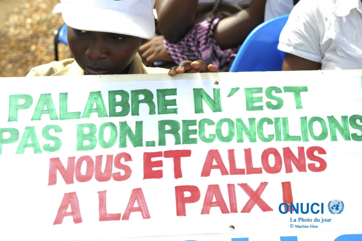 13 juillet 2016ONUCIAppel à la paix et à la réconciliation lancé aux Ivoiriens par des élèves lors d’une caravane scolaire organisée par l’ONUCI à Yamoussoukro (mars 2012)