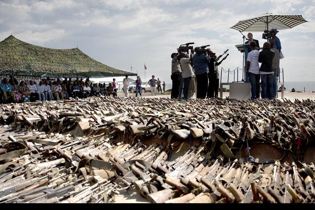 Cérémonie organisée le 20 novembre 2013 à Goma, au Nord Kivu, pour la destruction de 926 armes et de 38 801 munitions collectées auprès de différents groupes armés à l’Est de la RDC, d’octobre 2012 à novembre 2013, par la…