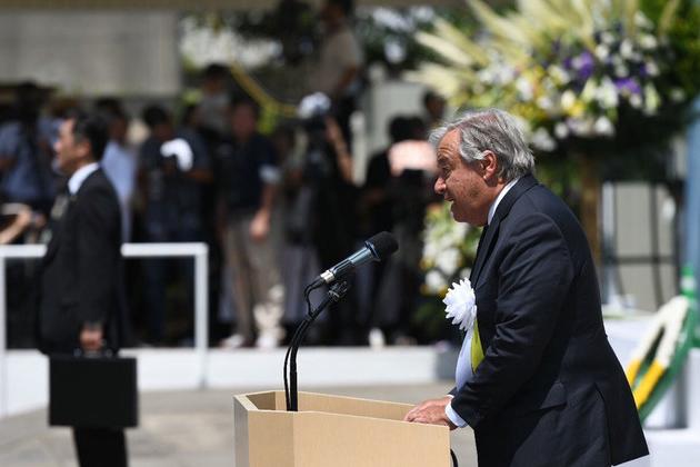 Depuis la ville japonaise frappée par la dernière bombe atomique, le chef de l’ONU a appelé les pays du monde entier à s’engager à réaliser le désarmement nucléaire.