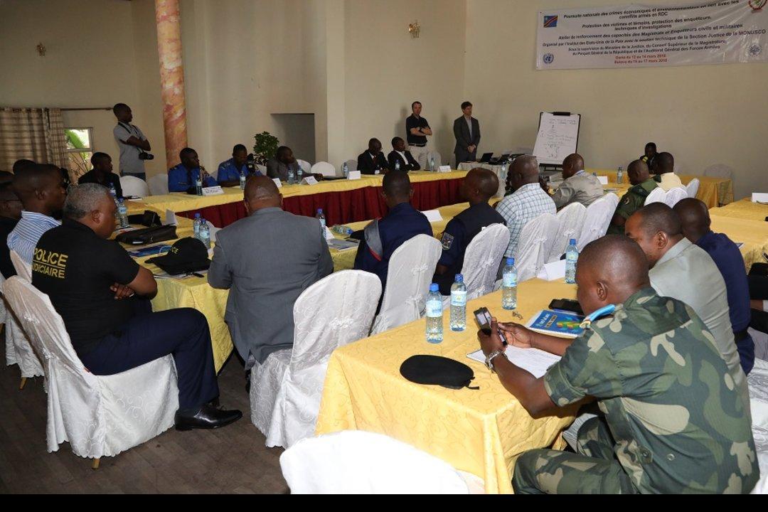 Session de formation sur la protection des victimes et témoins en matière de justice. Photo MONUSCO/Michael Ali Goma, le 14 mars 2018 – Comment protéger les Victimes et témoins lors des enquêtes sur les crimes économiques et…