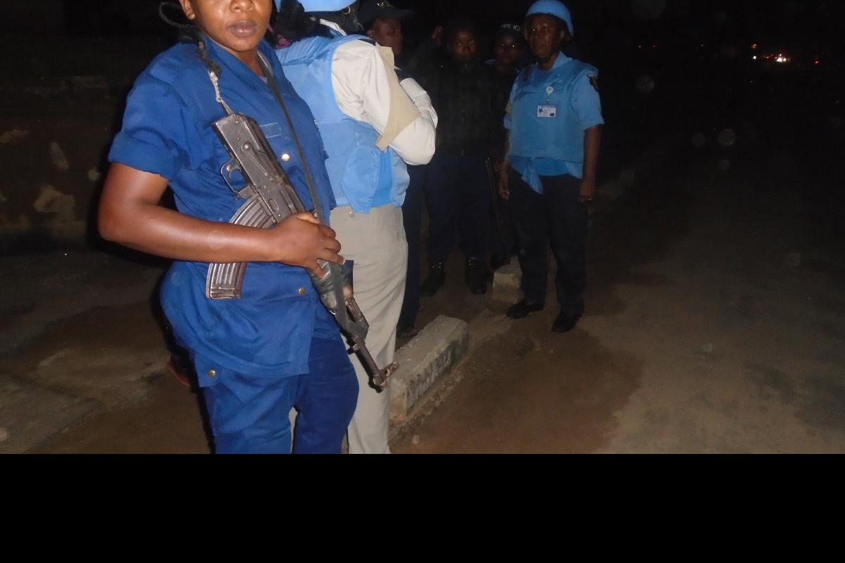 Echanges et conseils sécuritaires entre les officiers UNPOL et leurs consœurs de la PNC pendant la patrouille pédestre dans la nuit du 07 au 08 mars au niveau du pont Mulongwe à Uvira. Photos MONUSCO/UNPOL Uvira Uvira, le 8…
