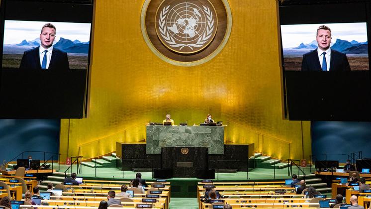 Выступая на 75-й сессии Генеральной Ассамблеи ООН, министр иностранных дел Исландии Гудлёйгур Тор Тордарсон рассказал о борьбе его страны с COVID-19 и с глобальным потеплением. Он осудил нарушение суверенитета Украины и Грузии, выразил обеспокоенность по поводу развития ситуации в Беларуси, а также призвал без колебания использовать экономические и политические рычаги давления на лидеров стран, допускающих грубые нарушения прав человека.