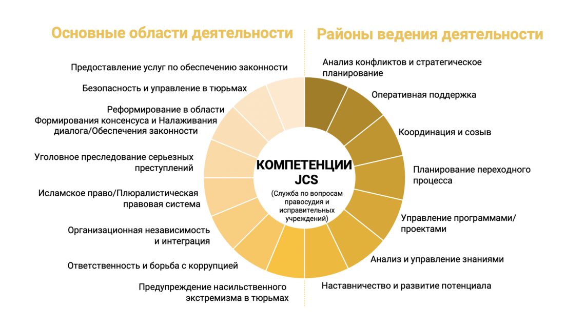Судебно-пенитенциарные компоненты тесно сотрудничают с национальными властями в целях содействия мирному урегулированию и предотвращению споров и включения соответствующих вопросов в число приоритетных задач, обеспечения более эффективной защиты гражданского населения, укрепления национальной безопасности и восстановления и расширения власти государства, восстановления доверия и социальной сплоченности и содействия выполнению мирных соглашений.