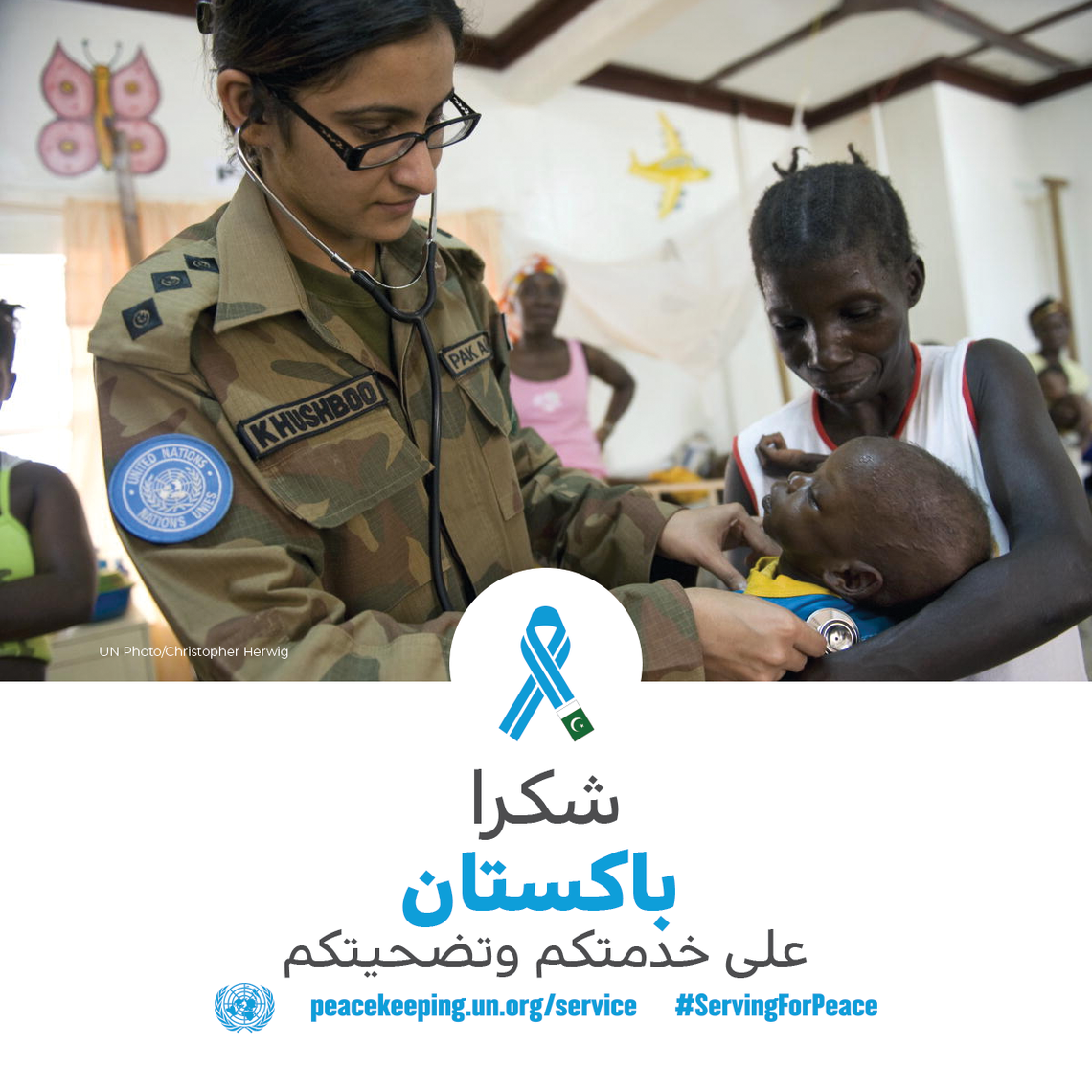 ![]() | باكستان لديها تاريخ طويل في عمليات حفظ السلام التابعة للأمم المتحدة، بعد أن كانت واحدة من أكبر المساهمين في القوات والشرطة منذ عقود. |