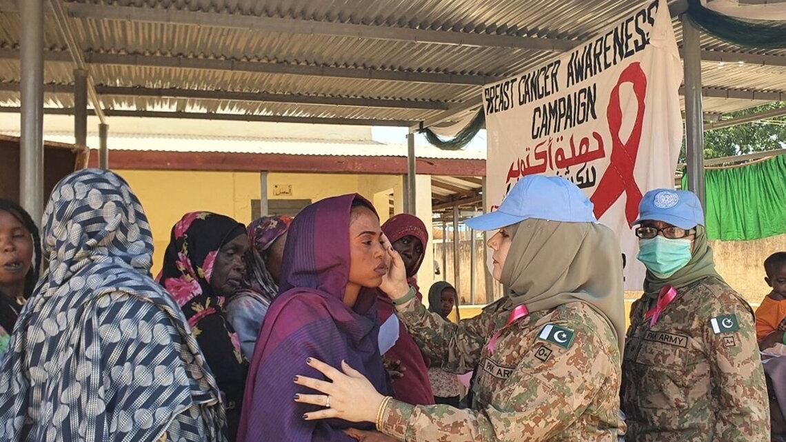 نظَّمت حافظات السلام بمستشفى باكستان الميداني العاملات بموقع البعثة الميداني في كبكابية، شمال دارفور مؤخرًا حملة توعية بسرطان الثدي في المحلية لتوعية المجتمع المضيف بأعراض ومخاطر سرطان الثدي مع التركيز على أهمية الكشف المبكر للمرض. وقد استفادت من هذه الحملة أكثر من 95 امرأة بما في ذلك 4 من المساعدات الطبيات بمستشفى كبكابية وطالبة طب واحدة.