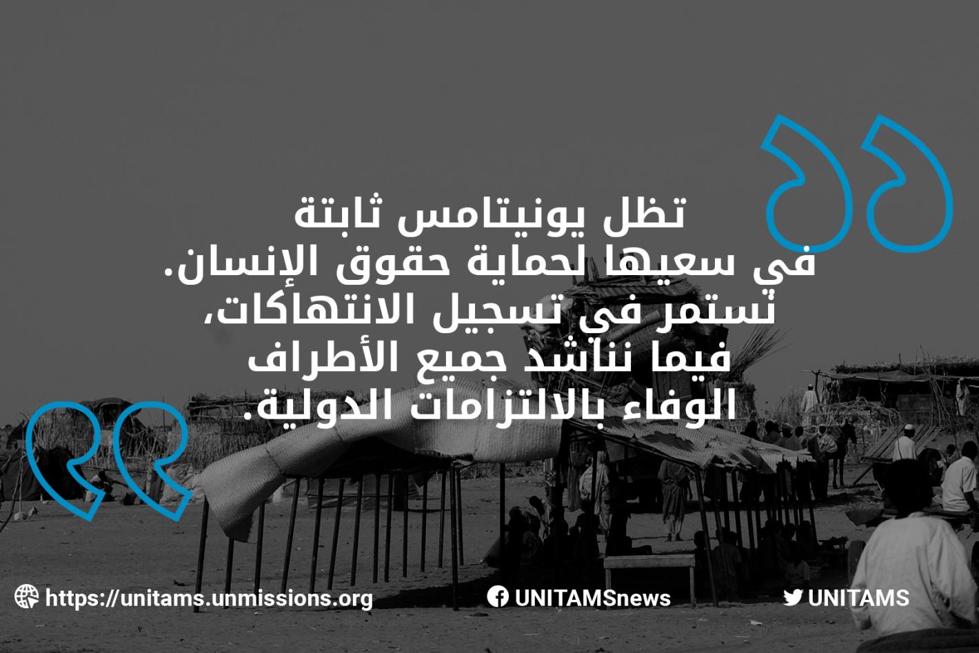 تعبر بعثة الأمم المتحدة المتكاملة لدعم المرحلة الانتقالية في السودان (يونيتامس) عن قلقها البالغ إزاء التأثير الخطير للقتال بين قوات الدعم السريع المدعومة من الميليشيات العربية والقوات المسلحة السودانية على المدنيين في منطقة…