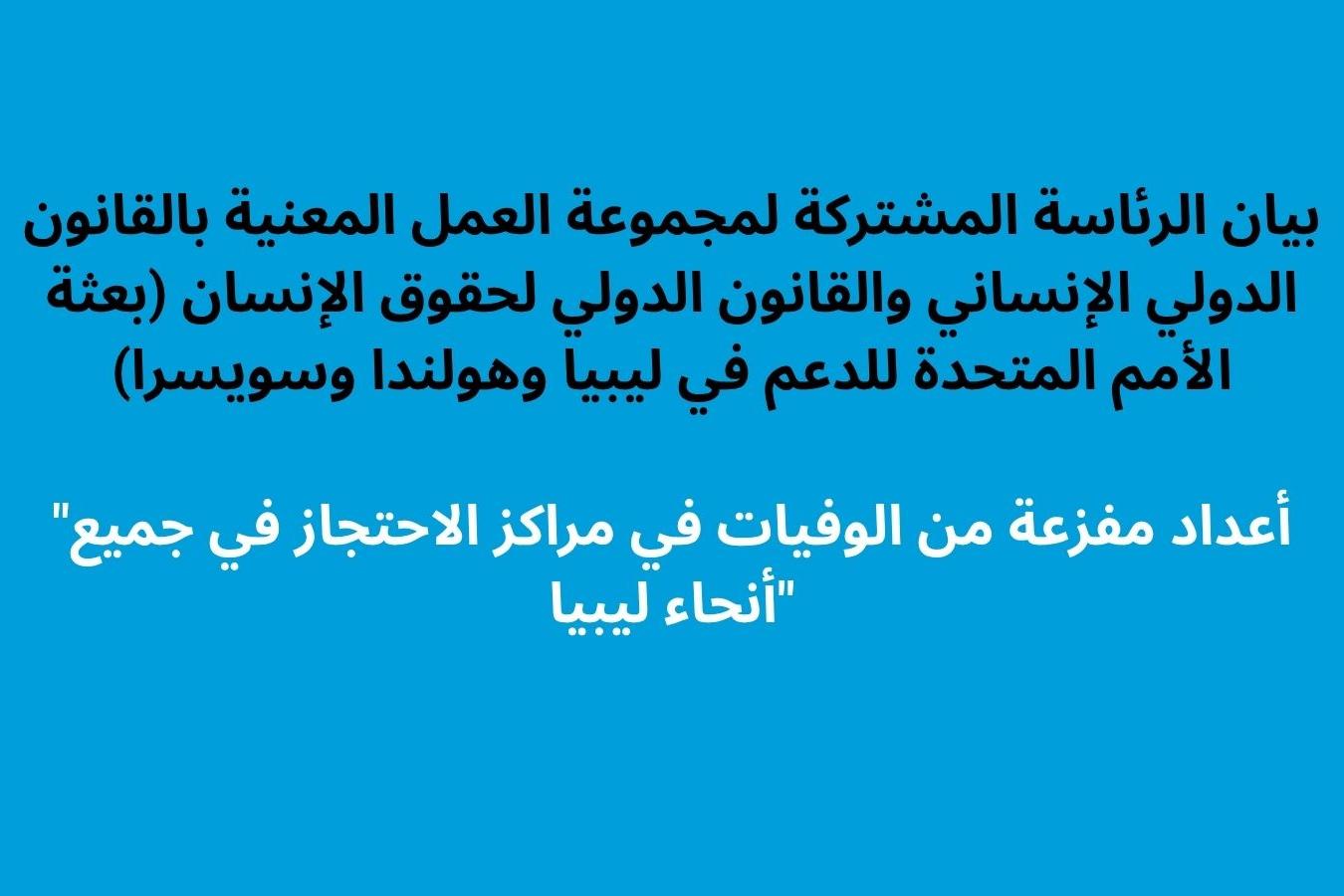 24 تموز 2025UNSMILبيان الرئاسة المشتركة لمجموعة العمل المعنية بالقانون الدولي الإنساني والقانون الدولي لحقوق الإنسان (بعثة الأمم المتحدة للدعم في ليبيا وهولندا وسويسرا)
