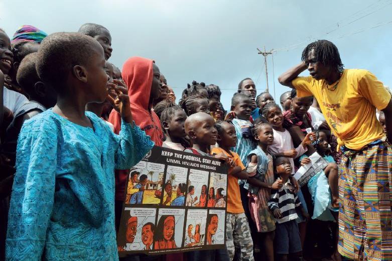 Comedian and UNMIL Peace Messenger, George Tamba (right), celebrated throughout Liberia as Boutini, performs in an AIDS awareness campaign. Photo: UNMIL | 22 Jun 11 Just after the Security Council passed resolution 1509 to…