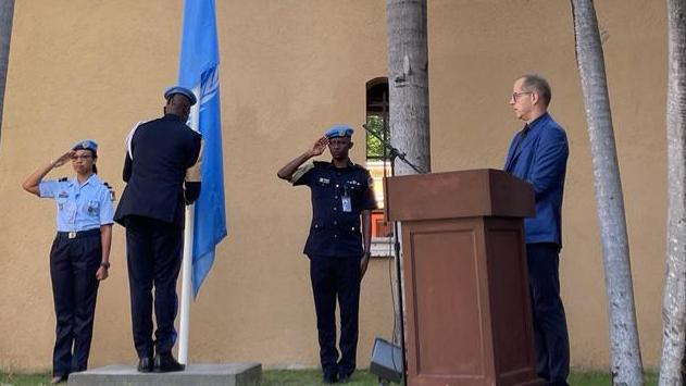 All BINUH personnel assembled outside the main BINUH entrance to attend the lowering to half-mast of the United Nations flag, and solemnly observe a minute of silence.