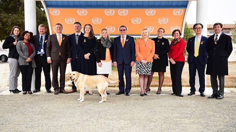 The Special Adviser of the Secretary-General on Cyprus, Mr. Espen Barth Eide, and the Deputy Special Adviser of the Secretary-General on Cyprus, Ms. Elizabeth Spehar, are joined by Good Offices personnel to send a message against gender violence during the 16 Days of Activism against Gender Violence 2016.