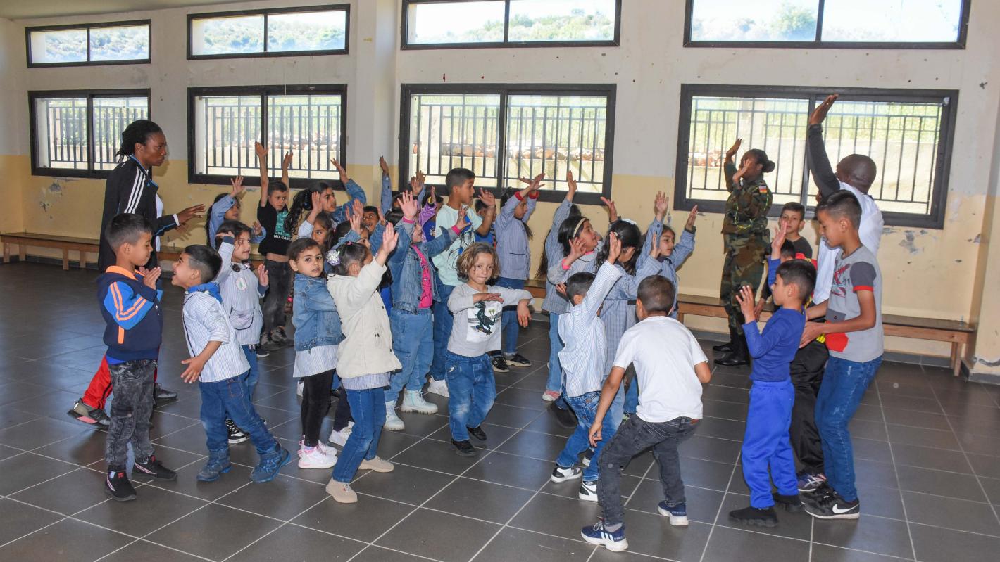 In an effort to promote healthy habits, Ghanaian peacekeepers organized an aerobics session for the students of Al Boustan Public Elementary School.