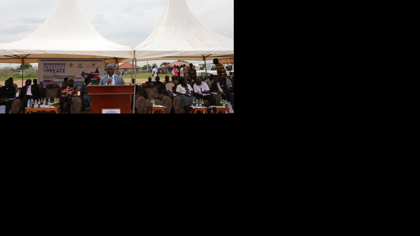 Over the course of the afternoon, some 2,000 residents came out to partake in the day’s event, despite the afternoon sun and haze.“All of you here today represent a critical link in the revitalised peace agreement,” said Interim R-JMEC Chairperson De Job Akuni. “The South Sudanese must claim ownership of the agreement, and to this end, we have committed to disseminating the agreement’s text through broadcasted and printed means across the country, in all local languages,” he continued.