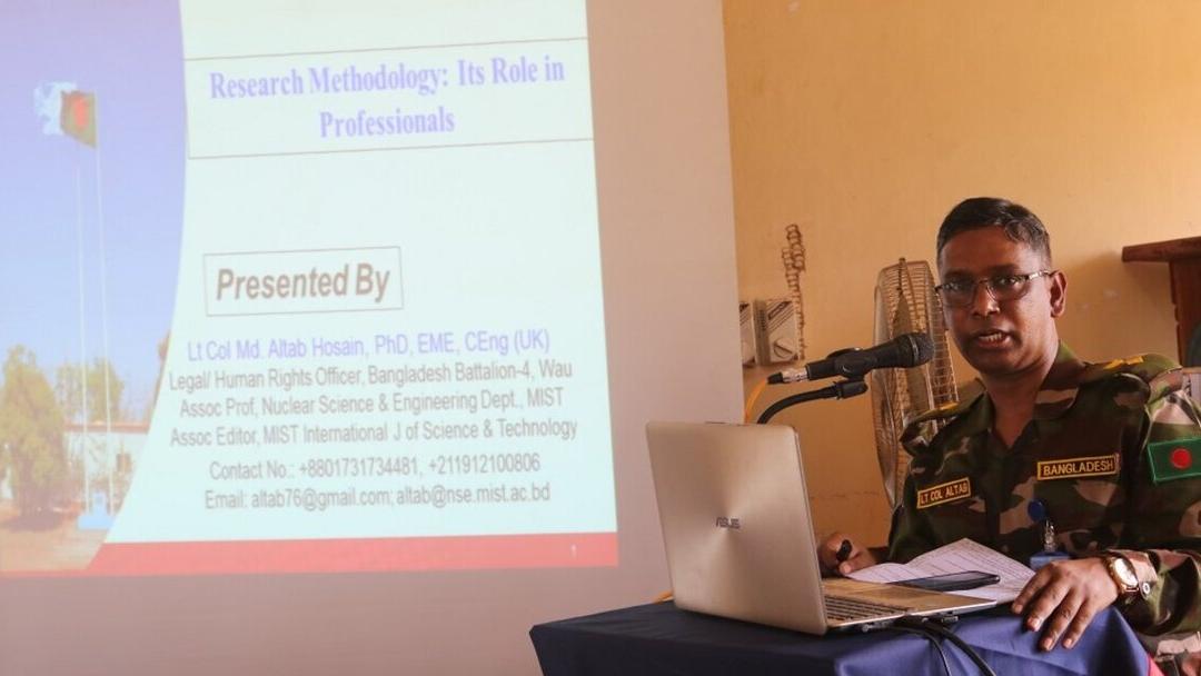 Peacekeepers deployed to Wau with the United Nations Mission in South Sudan (UNMISS), therefore, held an awareness raising session with students at the University of Bahr el Ghazal on applied sciences and research methodologies to utilize available resources to benefit communities and generate local production of necessary items.