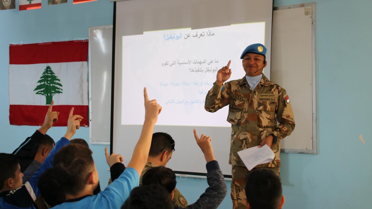 From time to time, UNIFIL peacekeepers visit schools to talk to students about the role of the mission in South Lebanon. The aim is to introduce the young generation to the mission so that they can have a better understanding of what peacekeepers do in southern Lebanon and why they are here.
