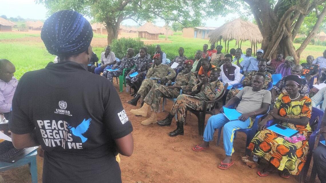 WESTERN EQUATORIA – In volatile South Sudan, people across the country crave peace and stability more than anything else. In a bid to make that dream a local reality, the Kozi and Mambe communities in Maridi County have established what they call a Protection Peace Committee.“You are now ambassadors of peace. You should share your new skills and knowledge with your fellow citizens,” Anthony Moudle, a Protection, Transition and Reintegration Officer serving with the United Nations Mission in South Sudan (UNMISS) told the members of the new committee and the 50 people who participated in a workshop conducted by the peacekeeping mission.The training, held over three days, aimed at raising awareness on protection of civilians and other aspects of the UNMISS mandate among those in attendance, including traditional chiefs, police officers, civil society representatives and religious leaders.Some sessions were dedicated to identifying and discussing the practical application of different approaches to sharing security-relevant information and the peaceful resolution of conflicts at an early stage, before they risk escalating.“Learning these skills will no doubt help us tackle challenges quickly, for example the misunderstandings that often arise between farmers and migrating cattle keepers,” said Justin Bidal, himself a grower of crops.Addressing differences of opinions in an amicable manner is something that local churches have always been recommending, using their significant influence to promote such solutions and the social cohesion they can bring.“We need peaceful relations and stability, and it is good for everyone to understand that the methods we are proposing are in line with what UNMISS suggests,” commented Phillip Mathew, the Kozy Archdeacon.Facilitators of the workshop also managed to dispel the common and at times confusion-inducing misconception that the UN peacekeeping mission and other UN entities, not least humanitarian agencies, operating in South Sudan are all focused on the same issues.“Now I finally understand that their roles are different, with UNMISS supporting peacebuilding efforts while the others are providing services and humanitarian assistance. That is good to know, and something I will share with my community,” said one participant, Monicca Awadia.This particular learning experience may have concluded, but hopes are high that the Protection Peace Committee will make its legacy long-lasting. Frazer Samuel Kalusi, a Kozi Chief, gave that optimism a voice.“There has been a lot of darkness taking over our country in recent years, but we can do our part. Our eyes have been opened and we are ready to use our new perspective and knowledge to do everything we can to bring back the light.”
