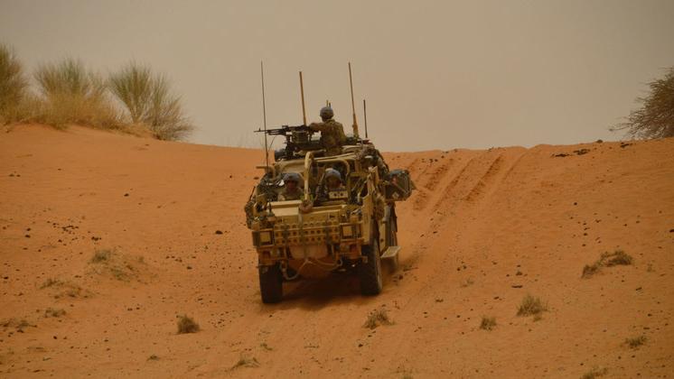 Crown copyright 2021Peacekeepers from the UK contingent of MINUSMA, gather for a photo opportunity while on patrol in the Gao region of Mali. Bringing a sense of security