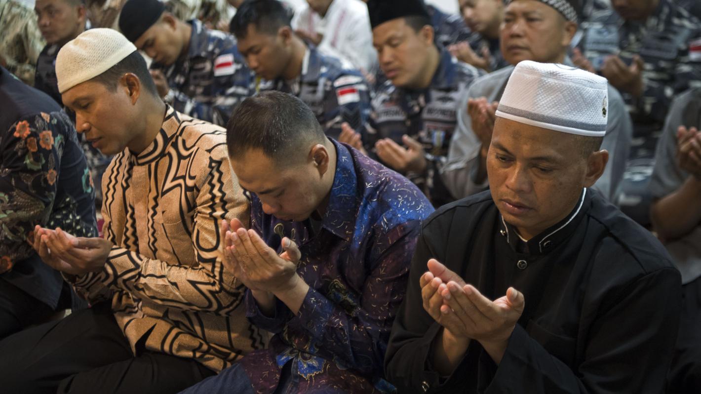 UNIFIL’s Captain of the Indonesian corvette praying with his crew after Iftar.