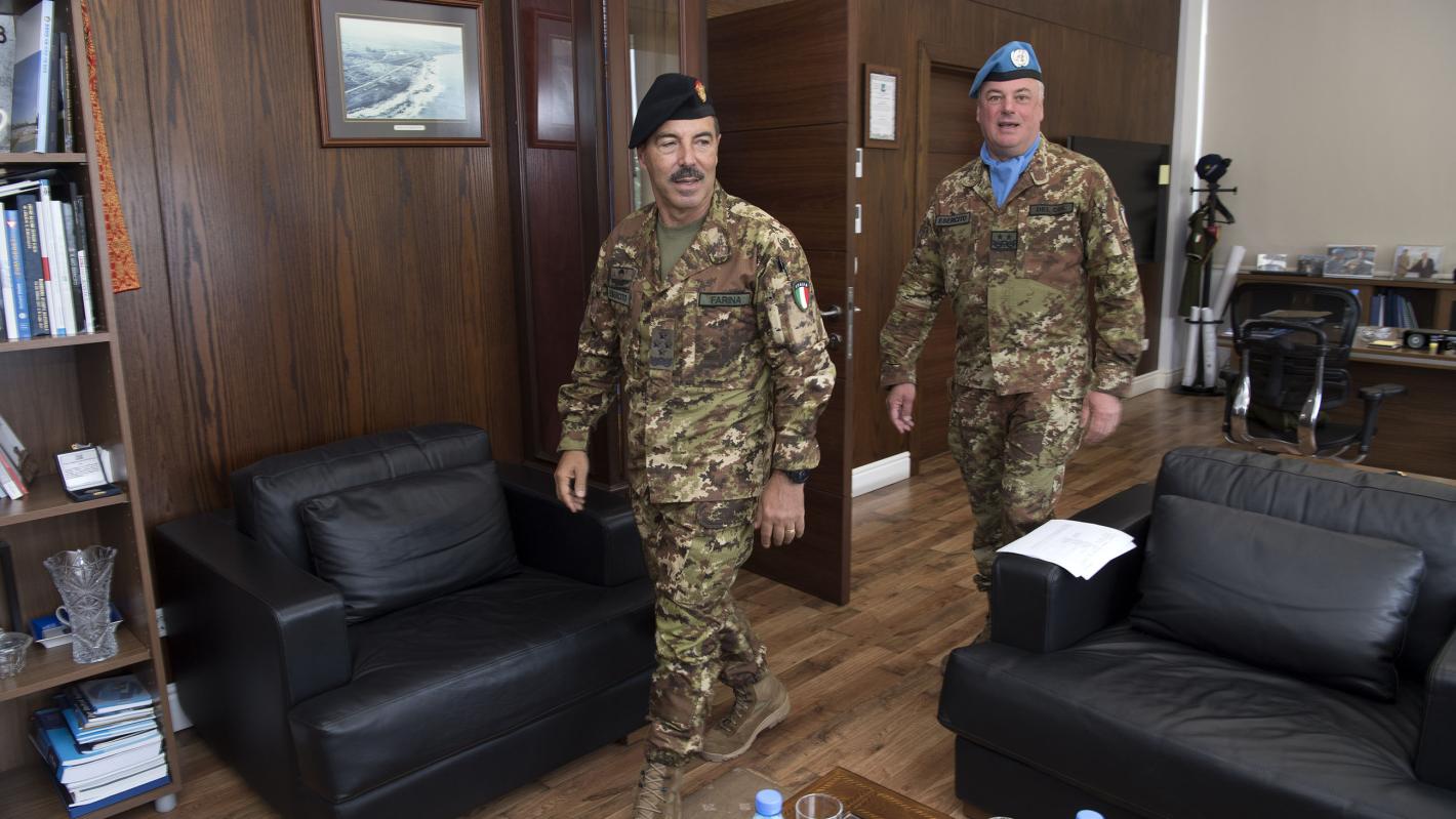 The Italian Chief of Army, Lieutenant General Salvatore Farina, visited the UNIFIL Headquarters today to reaffirm the country's support to the mandate of the peacekeeping force in south Lebanon.Upon arrival at the main UNIFIL base in Naqoura, he was received by the Head of Mission and Force Commander Major General Stefano Del Col. During their meeting, Major General Del Col expressed his appreciation for the important contribution Italian peacekeepers have made in furthering peace and stability in south Lebanon. On his part, Lt. Gen. Farina, who was also joined by Italian ambassador to Lebanon, Massimo Marotti, underlined the strategic importance of the UNIFIL mission and the contribution of Italian troops.Later in the day, Lt. Gen. Farina visited a UN position along the Blue Line, which is monitored round-the-clock by Italian peacekeepers. He also visited the main Italian base in Shamaa.With ITALAIR joining UNIFIL in 1979, Italy has a long and proud service with the Mission. Today, Italy contributes some 1,050 troops to UNIFIL, making it the second largest contributor to the Mission's some 10,500 UN Peacekeepers