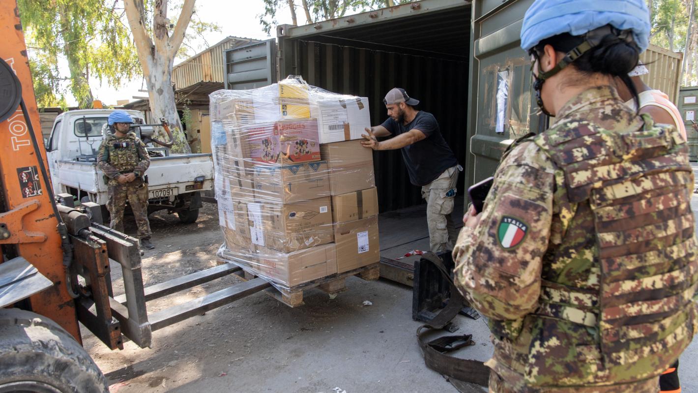 From school supplies to clothes as well as hygiene products and blankets, UNIFIL Italian peacekeepers recently donated a number of essential items to the population displaced by the ongoing violence across the Blue Line.