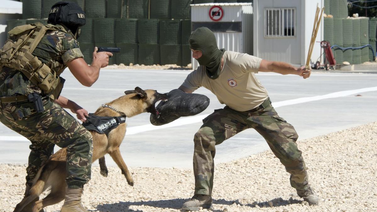 The Lebanese Special Forces soldier calls his combat dog to heel. The dog who is already growling at the “suspicious” man across the park, obediently responds. The soldier and his dog closely watch as the man makes threatening gestures and shouts aggressively. The dog tugs on his lead. The Lebanese soldier leans close to his animal’s ear, whispers a command, and the dog sprints across the park to attack.