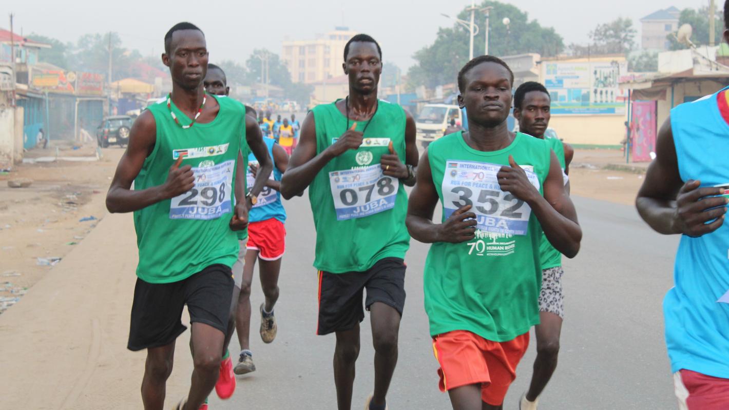 The event was organized by the United Nations Mission in South Sudan (UNMISS) to mark the International Human Rights Day. It was certainly an unusual sight for commuters more used to seeing military officers carrying guns on the streets than watching them dodge boda-boda motorcycles and sprint alongside taxi vans in the morning traffic. But the crowds were appreciative of their efforts, waving and cheering them along.