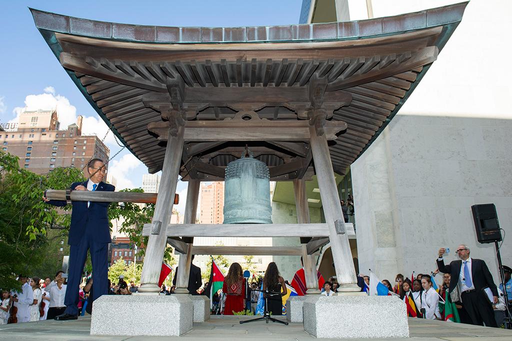 Before I ring the Peace Bell, and sound a call for peace and a day of non-violence, please join me in a moment of silence. Thank you.