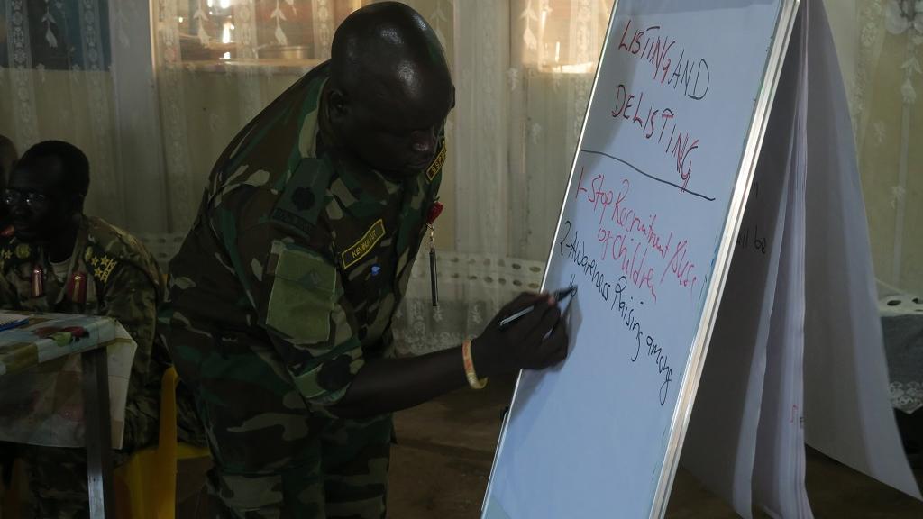 Military man listing what is needed for South Sudanese armed groups to be removed from UN list of armies violating the rights of children in conflict.