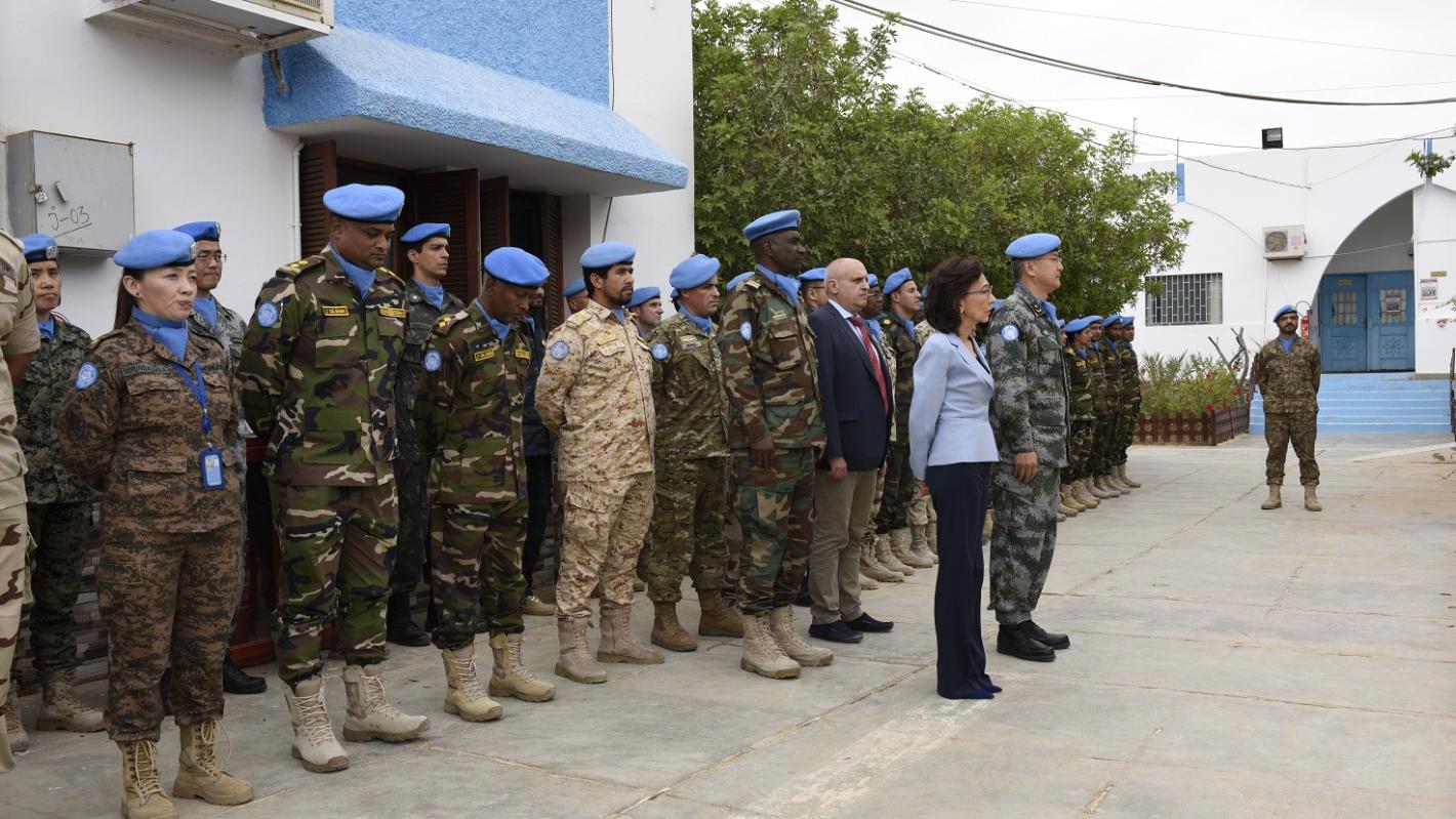 The memorial parade took place at the Mission Headquarters Parade Ground. It was co-chaired by Ms. Kim Bolduc, SRSG and Head of the Mission, and Major General Wang Xiaojun, Force Commander.