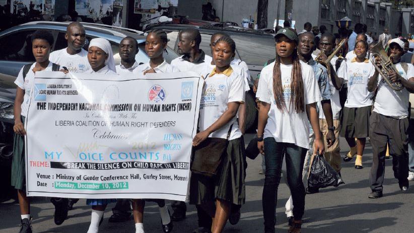 Female students marching on the streets of Monrovia to commemorate International Human Rights Day. Photo: Staton Winter | UNMIL | 10 Dec 12