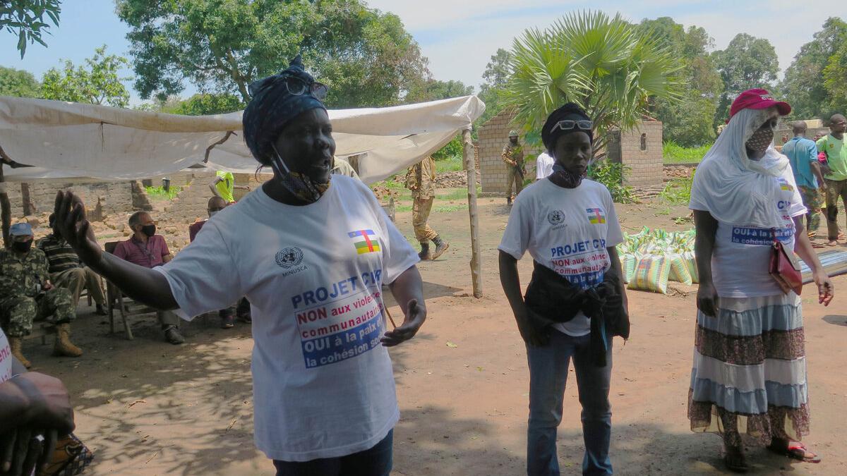 Olga Simandele is certified in conflict resolution and mediation. She is a member of the Third-Party Neutral (TPN) group from Kaga-Bandoro, composed of community leaders and other community members as well as local authorities. This association was established in 2016 by the DDR section of MINUSCA and its members were trained by Canadian experts. On 17 May 2021, an inter-community conflict broke out between the communities on the Ngrevai-Kotamale axis in Nana-Gribizi (Central CAR), resulting in 14 deaths, three injuries, and the massive displacement of the population to a in Kaga-Bandoro. It is in this context that the TPN is carrying out awareness-raising activities for the return of peace and social cohesion within the communities.