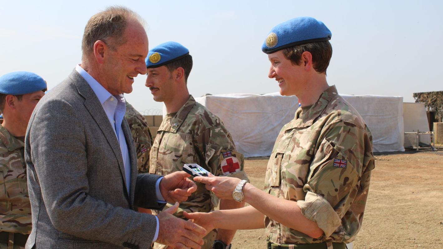 The Special Representative of the Secretary-General, David Shearer, awarded the UN Peacekeeping medals to the troops, including their commanding officer, Lieutenant Colonel Katie Hislop, at a special ceremony in Malakal.