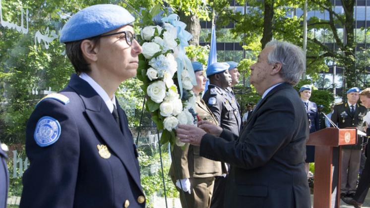 After laying a wreath to honor fallen Peacekeepers, @antonioguterres reminds the world of the sacrifices of the men and women who serve under the UN flag. Remarks: https://t.co/51TSCY6ryY#PKDay#A4P@UNPeacekeepingpic.twitter.com/7QXHSSoTnM