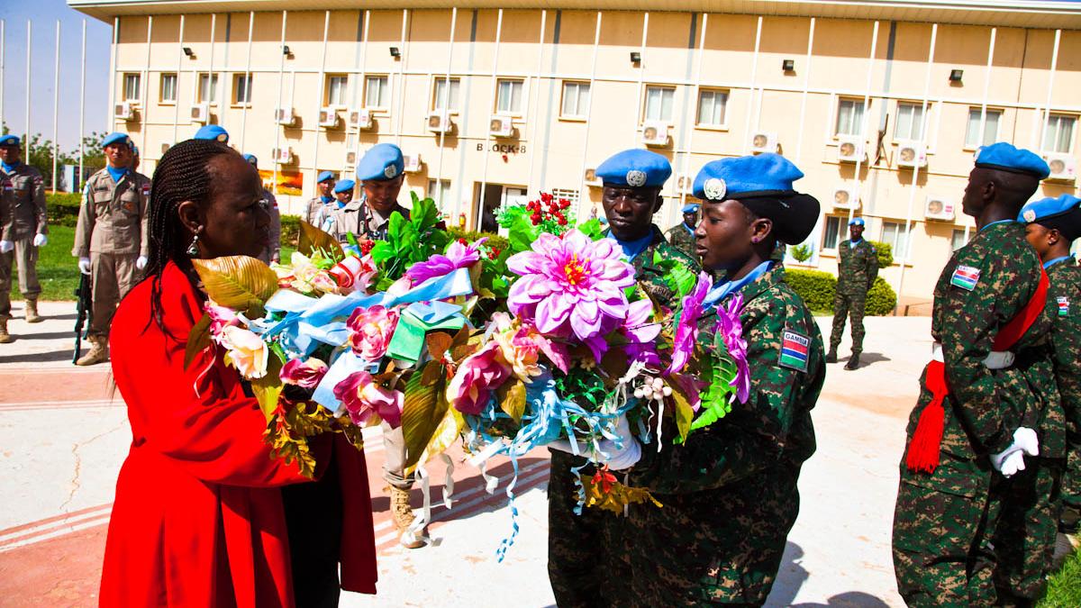 Attended by Mission leadership, a representative of North Darfur and UNAMID military, police and civilian staff, the event included a military and police parade. Peacekeepers who lost their lives in the line of duty were honoured with a minute of silence and the laying of wreaths. The lags of Sudan, the African Union and the UN were lowered to half-mast as a further sign of respect.