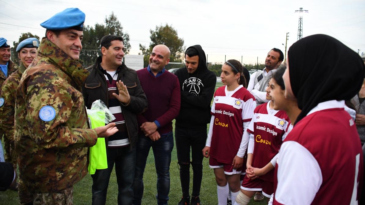 A UNIFIL delegation led by the Mission’s Sector West Commander Brigadier General Diodato Abagnara visited a women-only soccer team of south Lebanon recently as a display of encouragement for women’s participation in various spheres in the Mission’s area of operation.