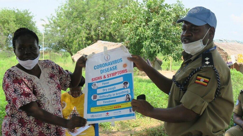 “As you go about keeping the area safe, it’s also a good idea to make villagers aware of necessary precautions to stop the Coronavirus from spreading,” UN police officer Julius Muzigiti advised.