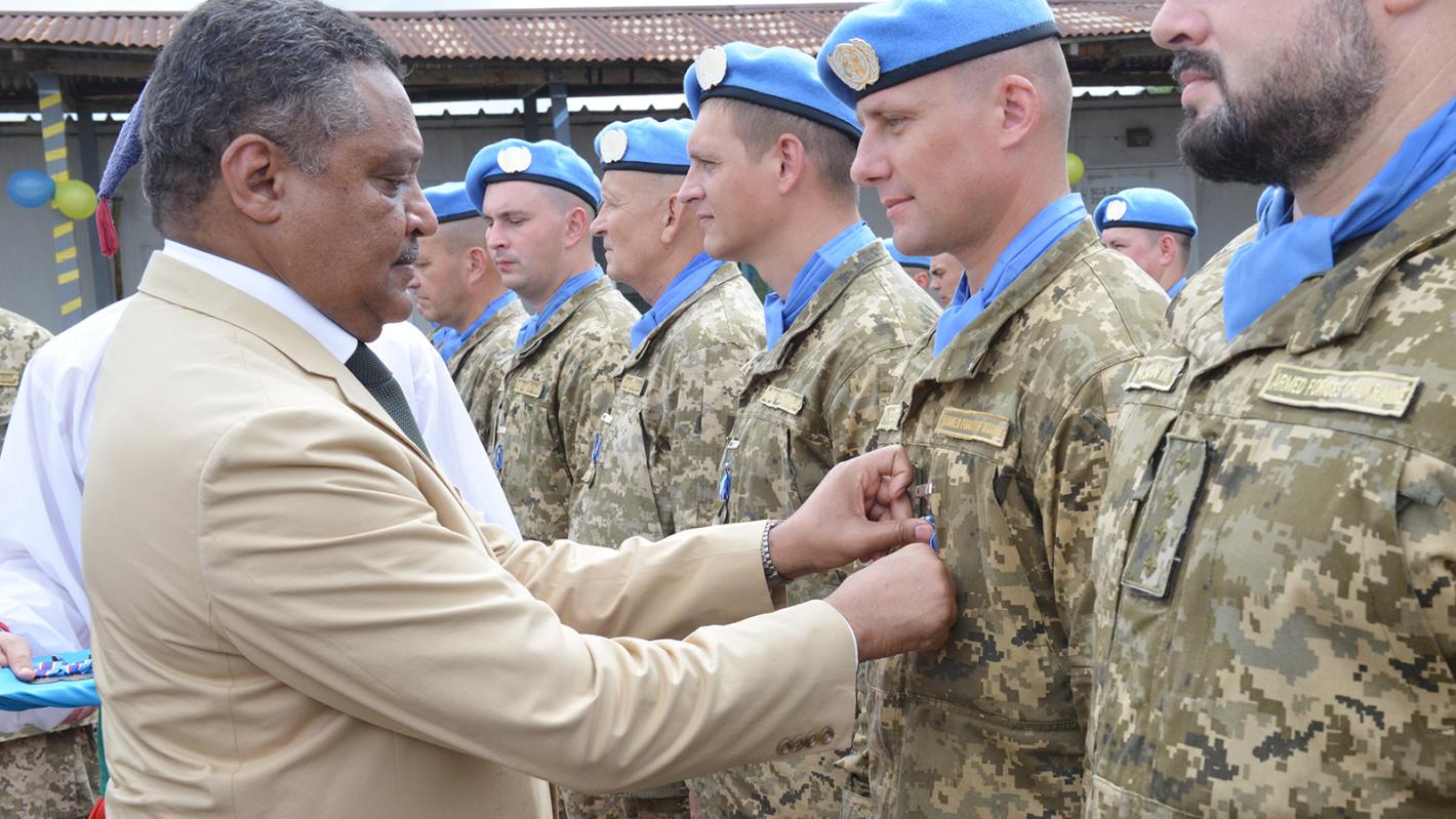 Monrovia - 105 members of the Ukrainian Contingent were today awarded with the United Nations Peacekeeping Medals in recognition of their contribution to peace and stability in Liberia.