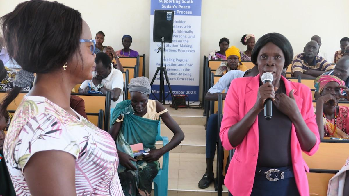 “After this two-day workshop I have a much better understanding of what a constitution is, and that I, as a citizen and woman, can and should be involved in this process and to vote when we have elections. We internally displaced persons and refugees have the same rights as everyone else,” affirmed Nyua Arop Monykuany, one of 100 persons participating in the event.