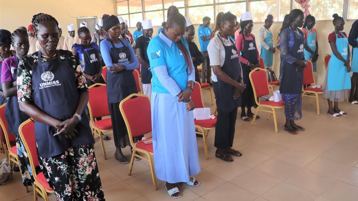 UNITY STATE - No less than 60 women are now equipped with the skills they need to write their own future as entrepreneurs in the community, thanks to an initiative by the United Nations Mission in South Sudan (UNMISS) and the Women's Vision organization.Over a three-month period, Monday to Friday, local women of Bentiu were busy learning the practical skills of tailoring, bread-making, hairdressing, and more.One of those women, Ms. Nyakuoth Gai, could barely contain her excitement as she stood waiting to receive her graduation certificate. "This training has been a life-changing experience. It has not only equipped us with valuable skills but also instilled hope for our future," she stated as she made her way back to her chair. “These skills give me job prospects and the ability to support their families.”Echoing her sentiments, fellow participant Nyachak Baliu expressed gratitude towards UNMISS and Women's Vision: "The training provided by UNMISS has given us more than skills; it has given us a vision for a better future."As this class of hopeful business owners completed their training, Angelina Mwangangi, the Program Manager for Women’s Vision, stressed that they won’t be alone on the next part of their journey. “We are committed to continuing our support for you, ensuring you have the materials needed to start and sustain their businesses," she told the crowd.“Empowering local women through vocational courses is a stepping stone to enhancing livelihoods in Unity State," she continued.The Project is a part of UNMISS’s efforts to support the local communities in South Sudan in rebuilding their livelihoods.