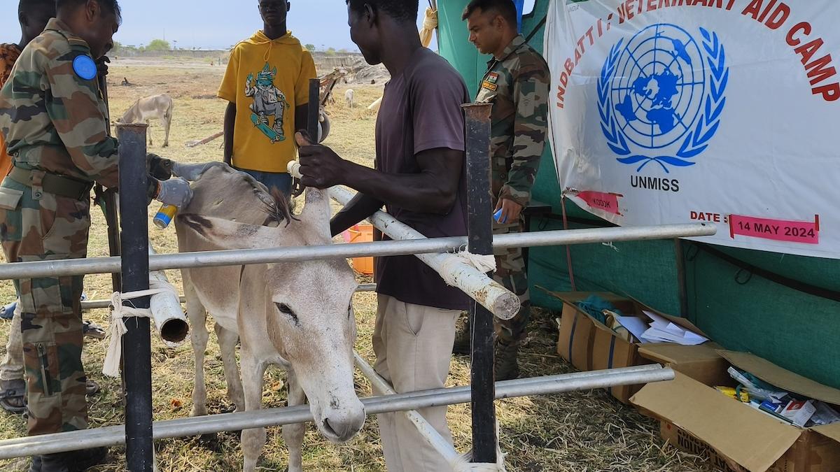 To help bridge this gap, Indian veterinarians serving with the United Nations Mission in South Sudan (UNMISS) recently provided free veterinary services for livestock owners in Kodok, Upper Nile.
