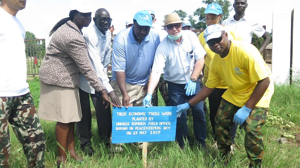 “The UNMISS Rumbek field office voluntarily decided to clean the hospital grounds, donate cleaning supplies, and plant trees to honour the fallen heroes and heroines of the UN in a very special way. What we have done today, especially the planting trees, will have an everlasting mark on the lives of citizens of Rumbek,” said Imad Audeh, a field officer for the mission.
