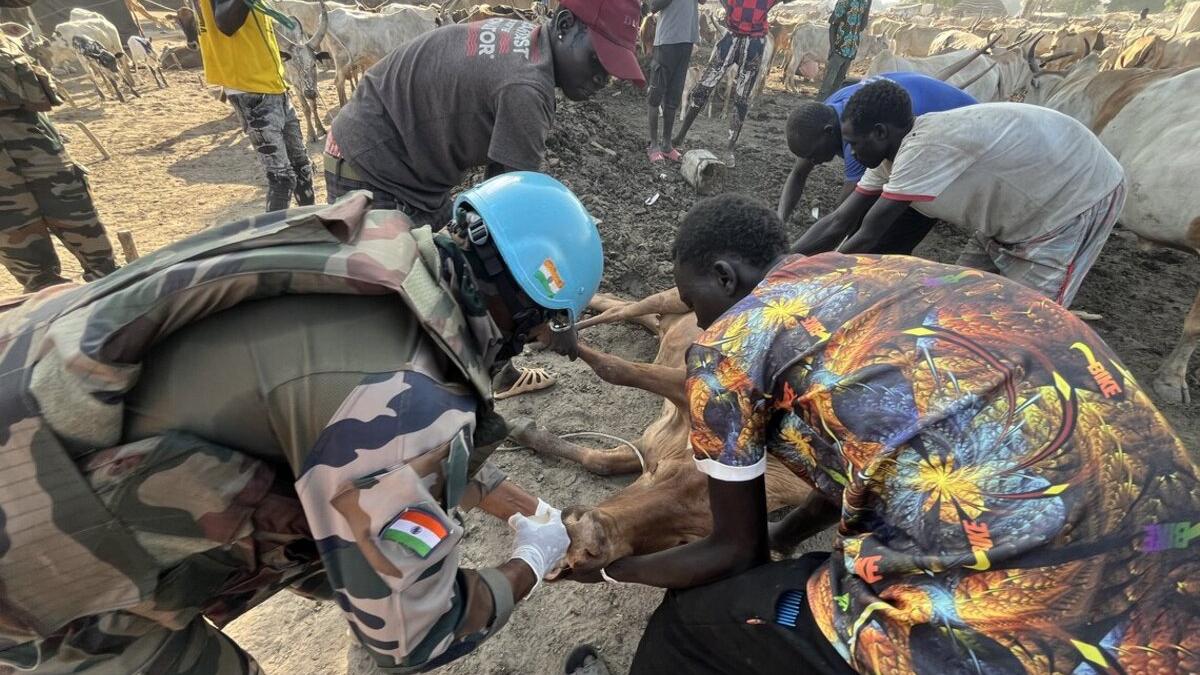 Veterinarian peacekeepers from India help protect peace by caring for cows in Abyei