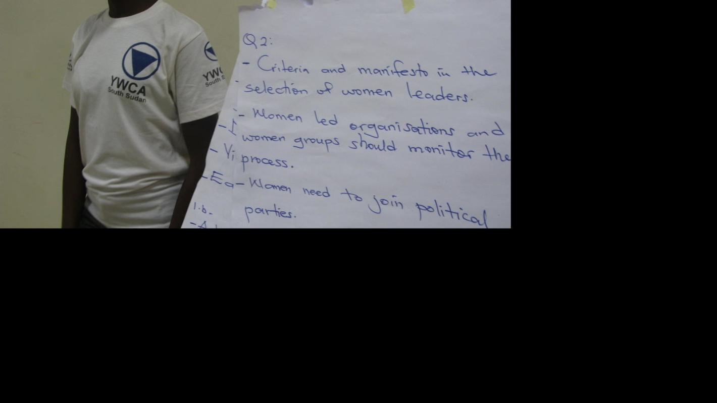 Catherine Lotto from the Young Christian Women's Association at a workshop about gender provisions in the revitalized peace agreement.